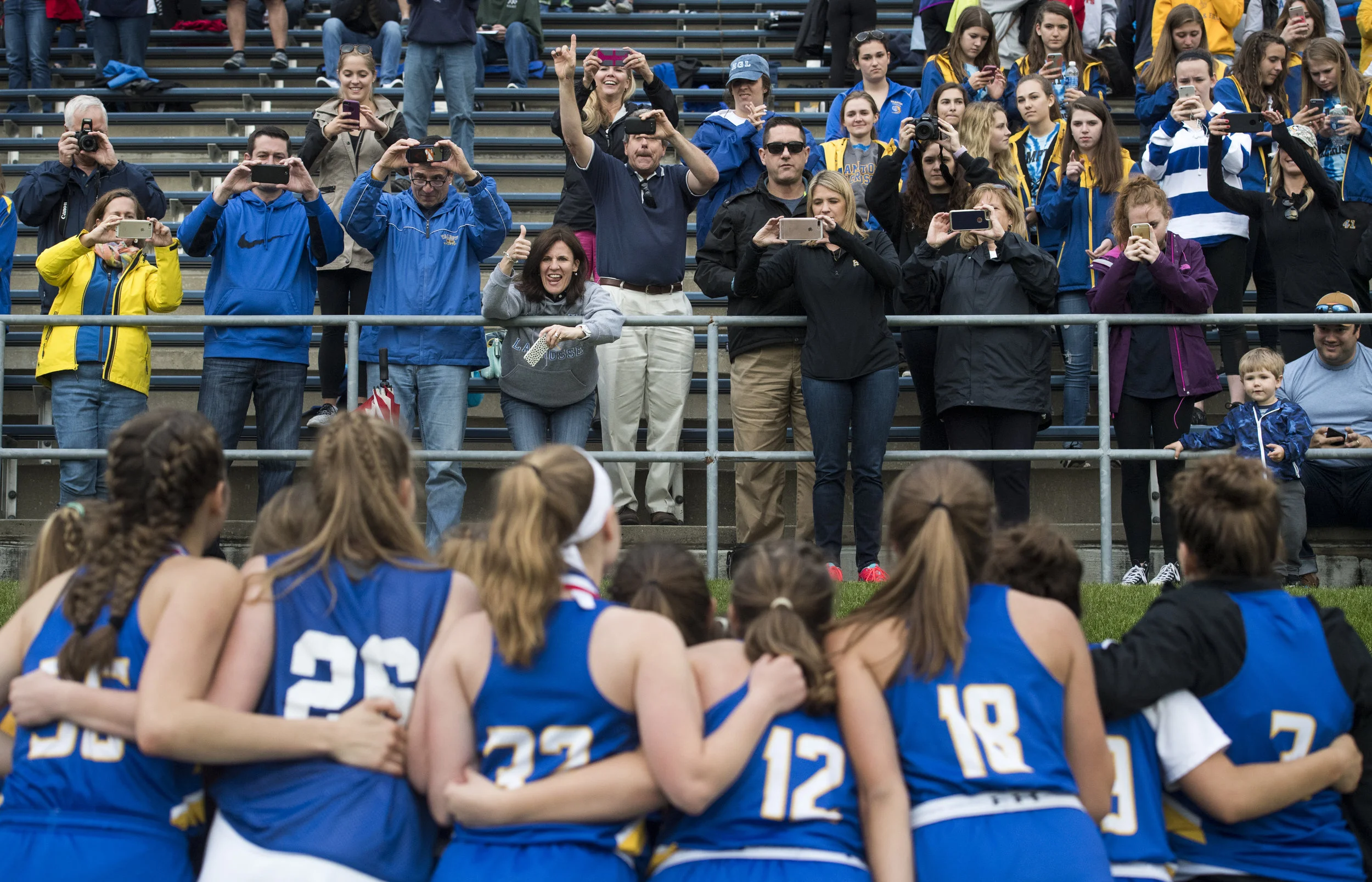 South Fayette’s Jamie Diven and Sareena Waskowiak kiss after South Fayette beat Thomas Jefferson, 31-24, during the WPIAL Class 4A championship on Saturday, Nov. 17, 2018, at Heinz Field. (Steph Chambers/Post-Gazette)